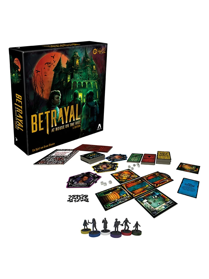 Das Haus auf dem Hügel steht immer noch verlassen da und eine Gruppe furchtloser Abenteurer wird hineingelockt, um die dunklen Geheimnisse des Hauses zu erkunden. Hier übernehmen die Spieler die Rolle eines dieser Abenteurer und können in die fesselnde Geschichte eintauchen. „Betrayal at House on the Hill 3. Edition“ ist ein kooperatives Brettspiel und enthält 50 teuflische Szenarien und Dutzende von gefahrengespickten Räumen, die selbst den stärksten Spielern einen Schrecken einjagen werden. Zu Beginn ziehen die Spieler an einem Strang, doch im Laufe des Spiels wird ein Abenteurer die anderen verraten und der Spuk beginnt. Mit Inhalten und Spielelementen können neue Spieler sofort in das spannende Erlebnis eintauchen. Das Story-basierte Spiel rund um Furcht, Schrecken und Verrat lädt zu einer schaurigen Spielnacht mit Monstern, Miniaturen und modularen Spielteilen ein