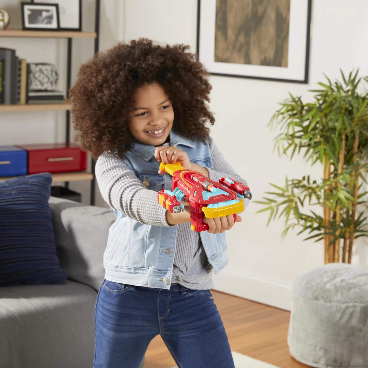 Dieser coole „Iron Man“-Strikeshothandschuh aus dem Hause Hasbro ist ein tolles Geschenk für jeden kleinen „Iron Man“-Fan! Wird der Handschuh aktiviert, können damit die drei enthaltenen NERF Projektile abgefeuert werden. So machen lustige Nerfbattles besonders viel Spaß für kleine Superheld*innen!