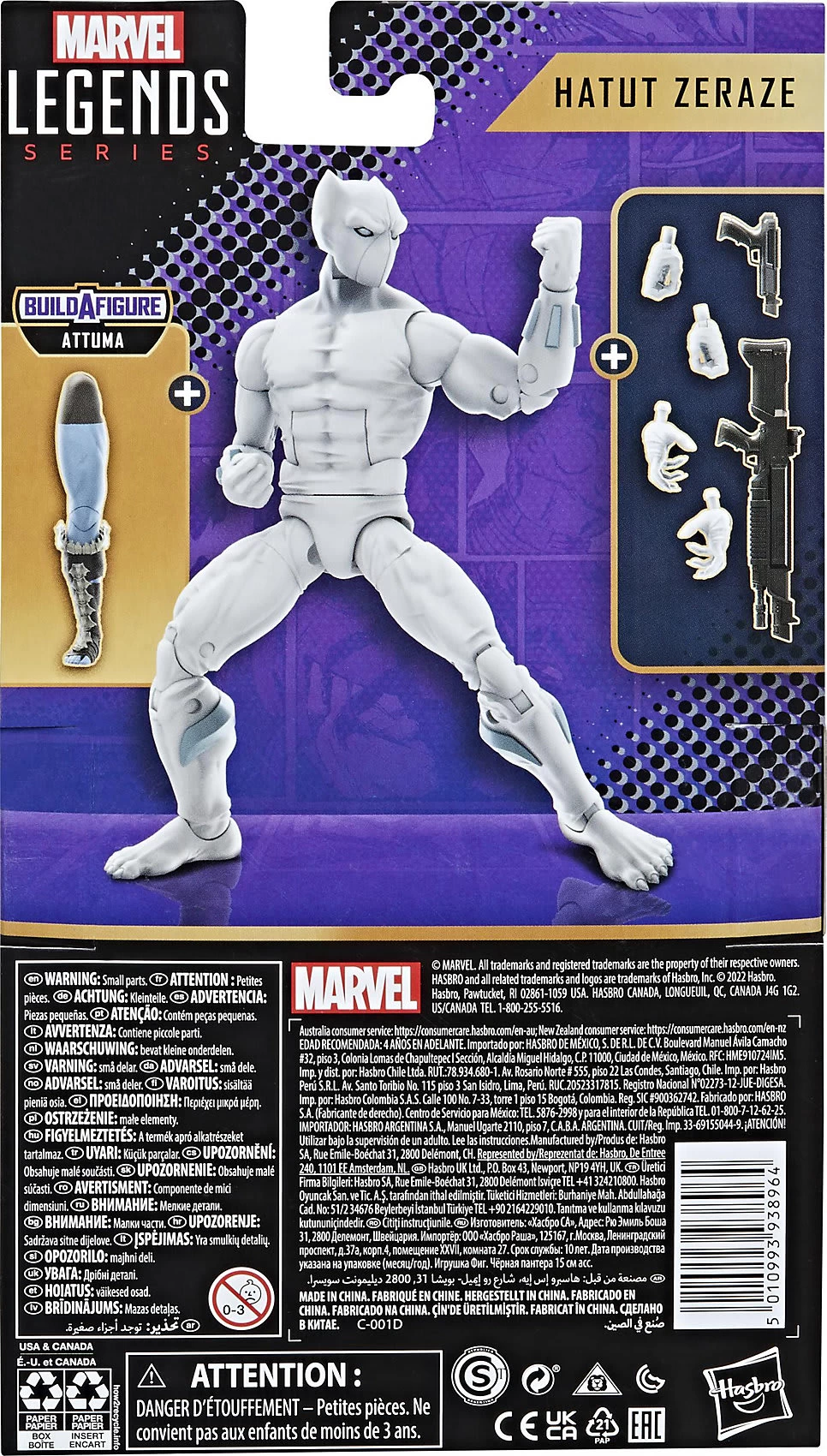 Die Hatut Zeraze sind die geheimen Verteidigungskräfte Wakandas und beschützen ihre Heimat mit allen Mitteln, die ihnen selbst und ihrem König angemessen erscheinen. Mit einer über 80-jährigen Entertainment-Geschichte ist Marvel ein zentraler Bestandteil der Fankollektionen weltweit. Die Marvel Legends Series zeigt die Lieblingscharaktere aus dem Marvel Comic Universe und dem Marvel Cinematic Universe mit Premium-Design und Bewegungspunkten, um sie zu präsentieren. Von Figuren und Fahrzeugen bis hin zu Premium-Rollenspielartikeln, bietet die Marvel Legends Series Fans und Sammler*innen erstklassige Produkte.