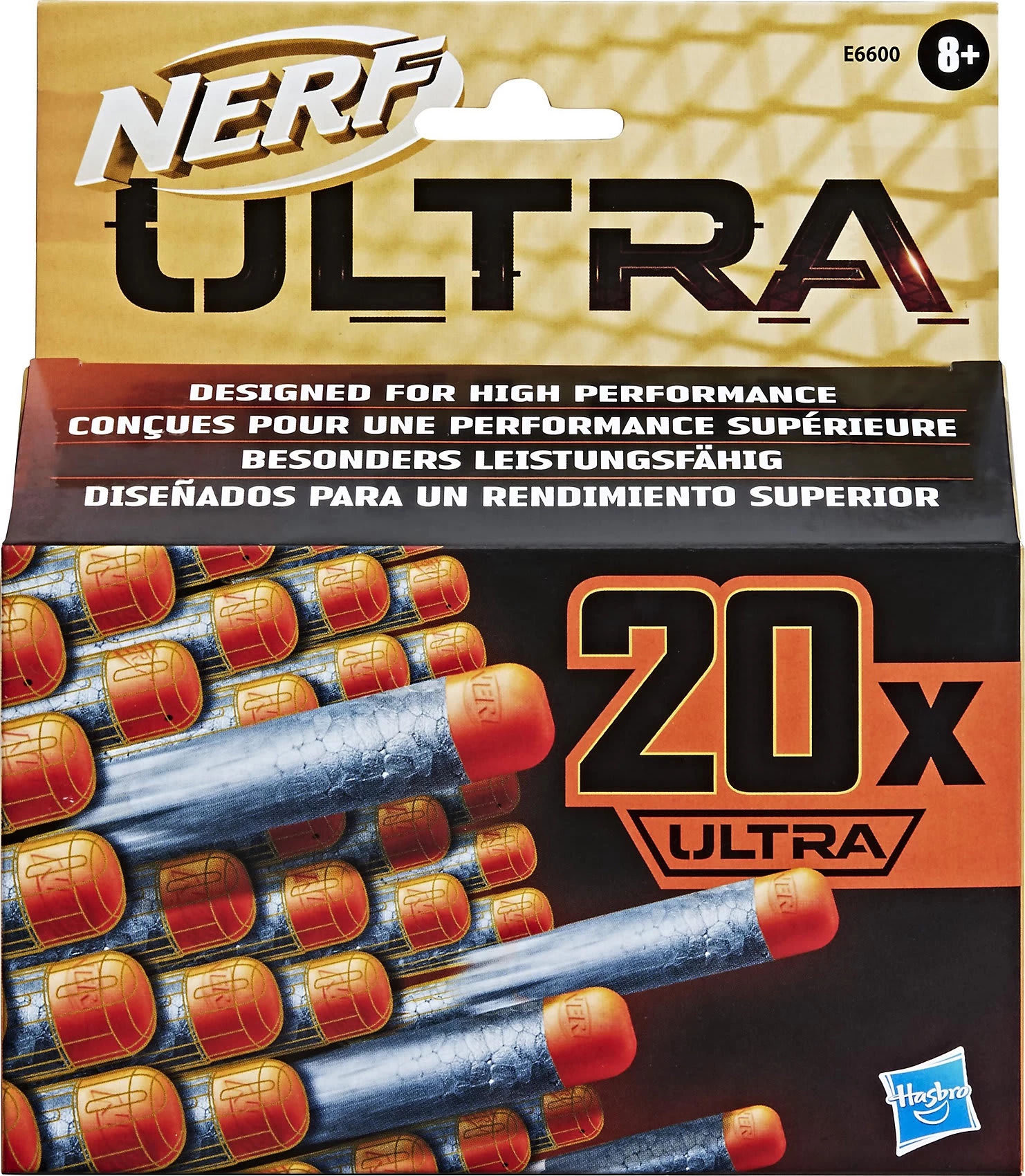 Mit diesem Nachfüllpack mit 20 Nerf Ultra Darts ist immer für Ersatz bei den Nerf Ultra Blastern gesorgt! Nerf Ultra Darts sind die am weitesten fliegenden Nerf Darts aller Zeiten – sie fliegen bis zu 36 Meter weit. Diese bahnbrechenden Darts sind mit einer innovativen Dart-Spitze, Fluglamellen Technologie und Nerf Ultra Material ausgestattet. Nerf Ultra Darts funktionieren nur mit Nerf Ultra Blastern. Nerf Ultra Blaster und Darts laden die Spieler dazu ein, den Gold-Standard zu erleben – ihr weiterentwickeltes Design und ihre verbesserte Leistung sorgen für hohe Reichweiten, Genauigkeit und Geschwindigkeit!