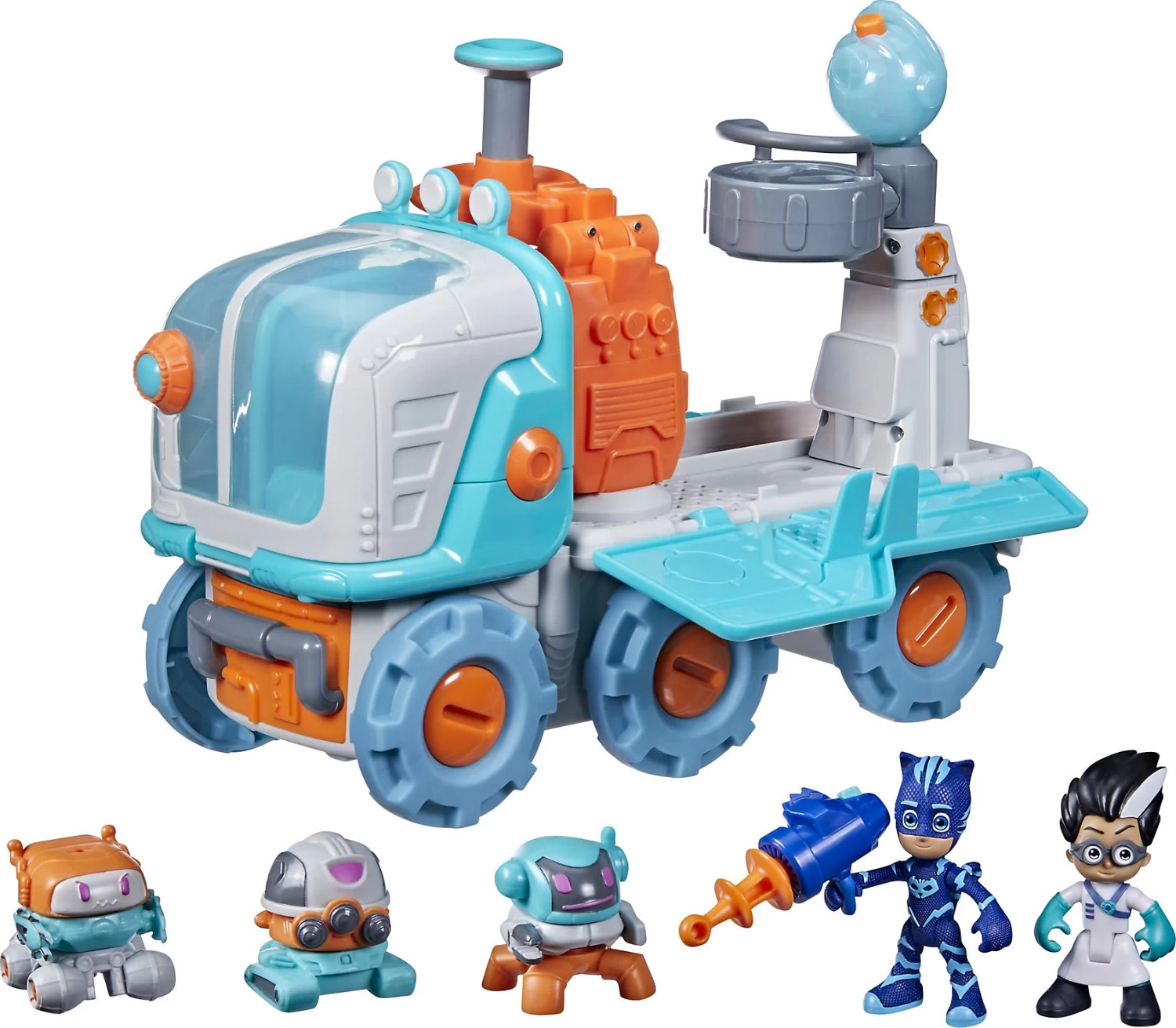 Dieser PJ Masks Romeos Roboterlabor-Set ist mit einem coolen Fahrzeug inklusive Lichtern und Geräuschen ausgestattet.