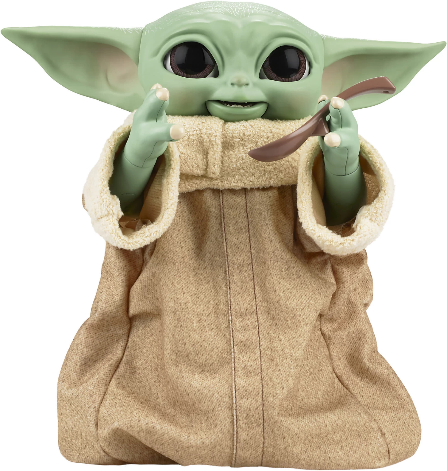 Inspiriert von der spannenden Serie „Star Wars: The Mandalorian“ gibt es nun eine coole „The Child“-Figur von Hasbro, die bei allen Fans für riesige Begeisterung sorgt! Die interaktive, elektronische Figur mit über vierzig Sound- und Bewegungskombinationen bietet jede Menge Spielspaß und kommt mit interaktiven Accessoires, die Reaktionen auslösen. Wird ein Accessoire im Mund von „Galactic Snackin Grogu“ platziert, macht er Mampfgeräusche und zeigt, ob es schmeckt oder nicht. Zudem streckt er beide Arme nach oben, wenn er hochgehoben wird. Diese und viele weitere Funktionen bieten Kindern lustige Unterhaltung!